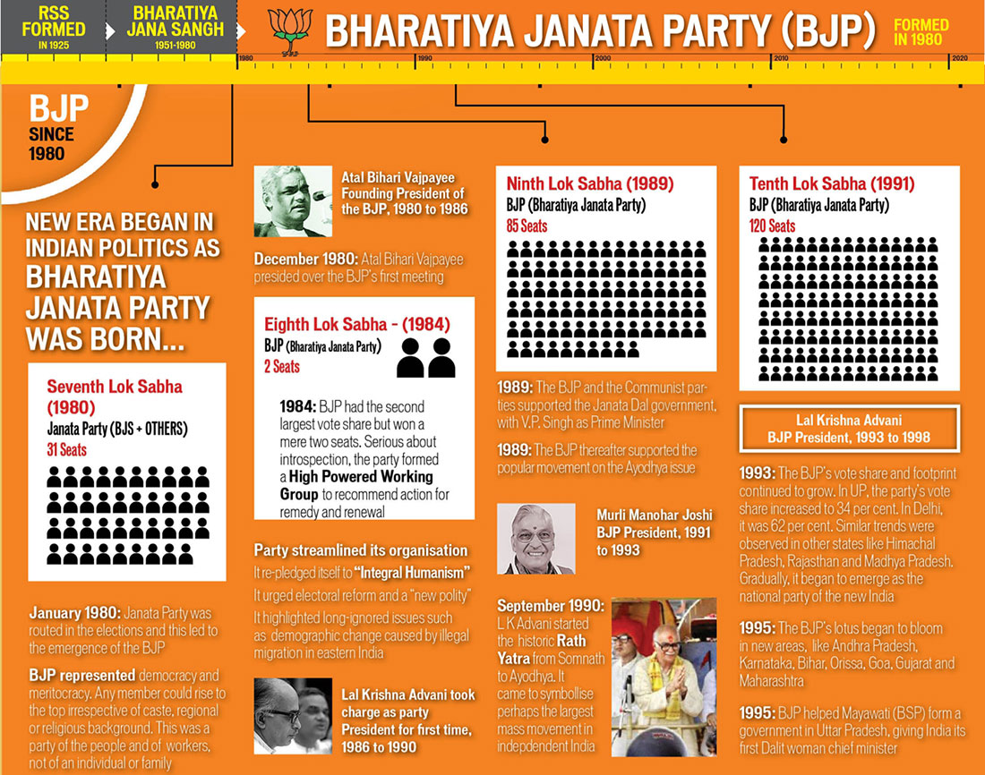 The Bharatiya Janata Party is today the most prominent member of the family of organisations known as the “Sangh Parivar” and nurtured by the Rashtria Swyamsevak Sangh (RSS). Like the RSS, the BJP is wedded to India’s unity and integrity, its intrinsic identity and the social strength, individual character and cultural uniqueness that have been the hallmark of this great country and its people for millennia.